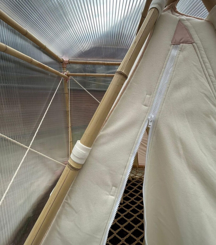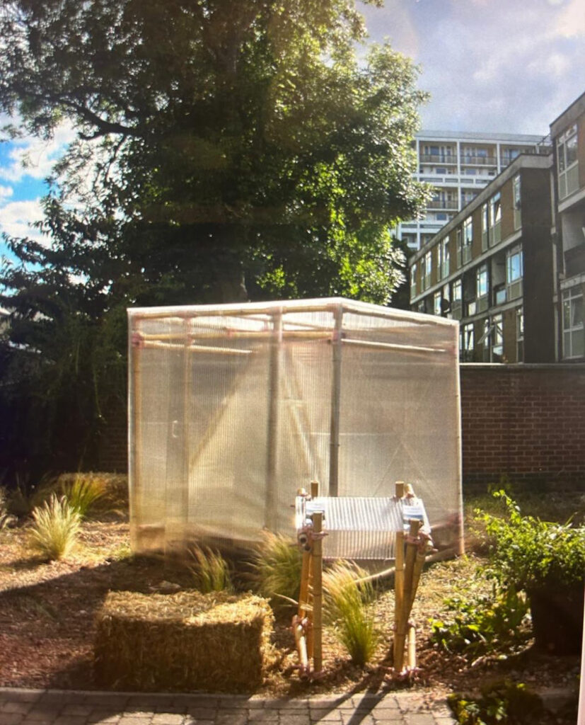 Silent Room’s tent like structure aimed to respond to both the architecture of LJ Works, and the surrounding area of Loughborough Junction, as did its theme of migration, movement and refuge. Situated near the Loughborough Junction train station, a place of movement and an area of London where many cultures intersect, visitors were encouraged to reflect and listen. To low frequency sounds from around the area. The installation featured a soundtrack by Gerard Gormley, creating a sonic crossroads that transplanted diverse sounds recorded around the site and local area into the urban environment. This immersive experience emphasised the importance of human well-being and offered a reimagined view of the city as a space of belonging and rest.